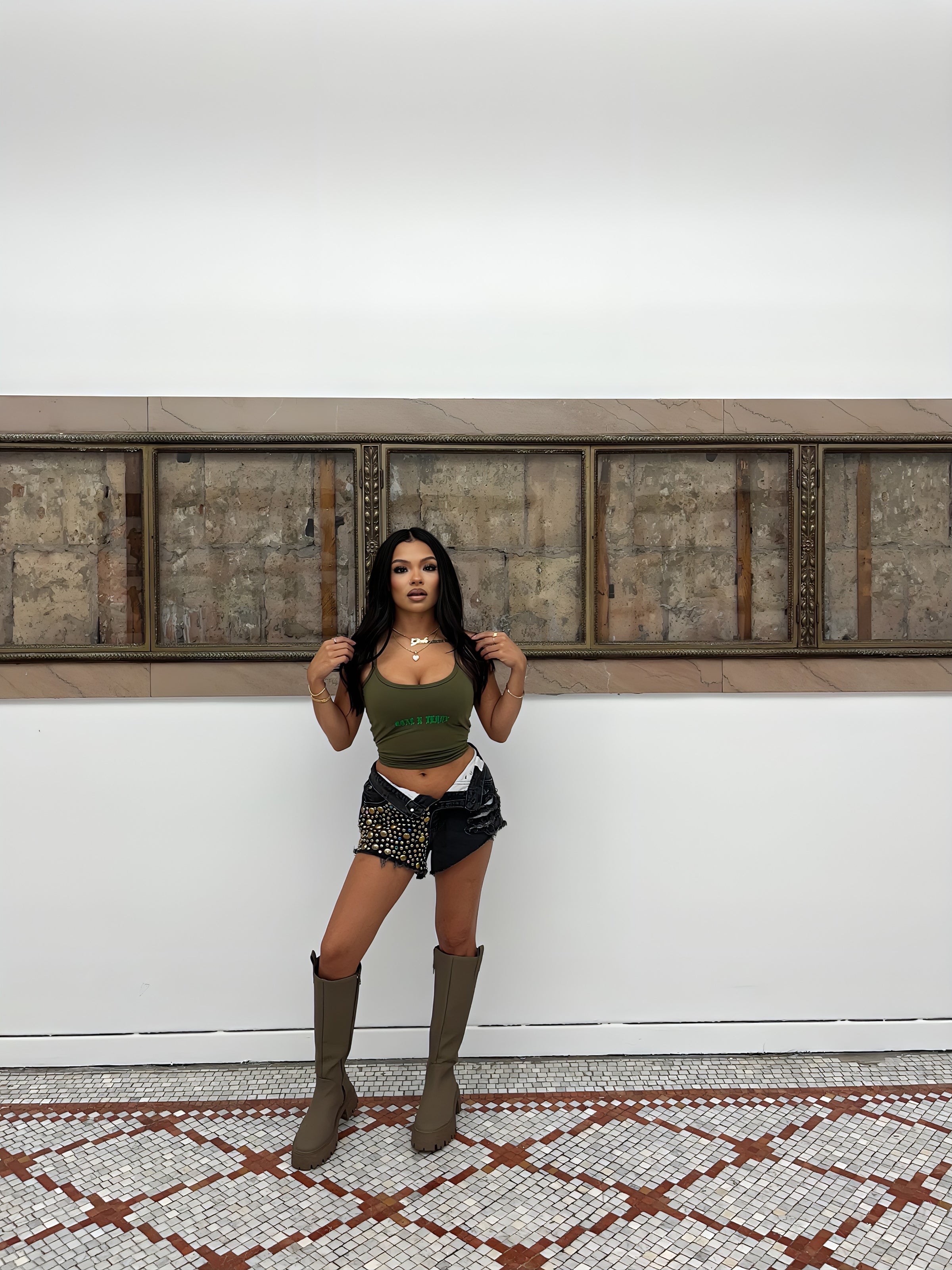 Get into the Y2K vibes in our custom Studded half explosion denim shorts. These are one-of-a-kind and only pair made.